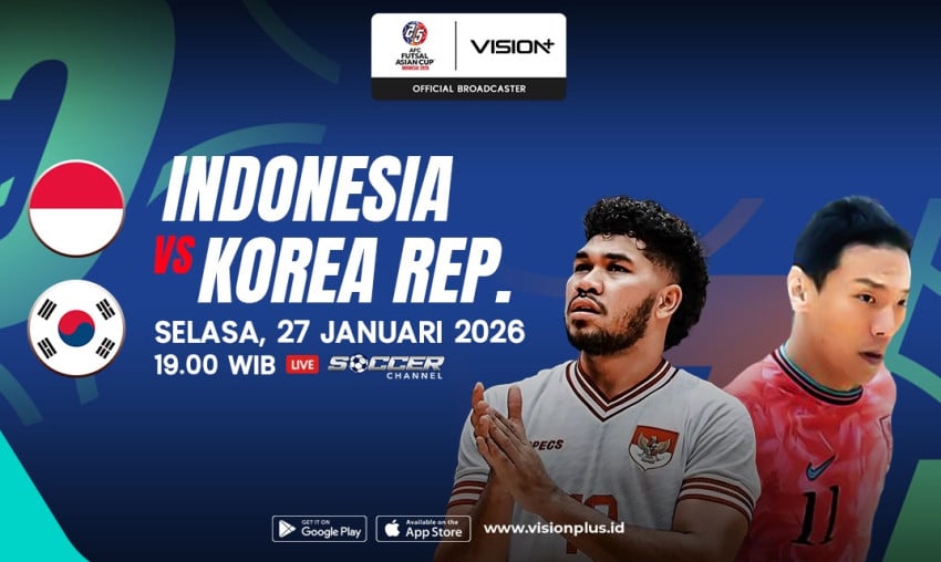 loading… Nonton Indonesia vs Korea Selatan di VISION+, Laga Perdana AFC Futsal Asian Cup Indonesia 2026! JAKARTA – Perjalanan Indonesia di ajang AFC Futsal Asian Cup Indonesia 2026 akan berlangsung mulai 27 Januari hingga 7 Februari. Timnas Futsal Indonesia dijadwalkan menghadapi Korea Selatan pada Selasa, 27 Januari 2026, pukul 19.00 […]